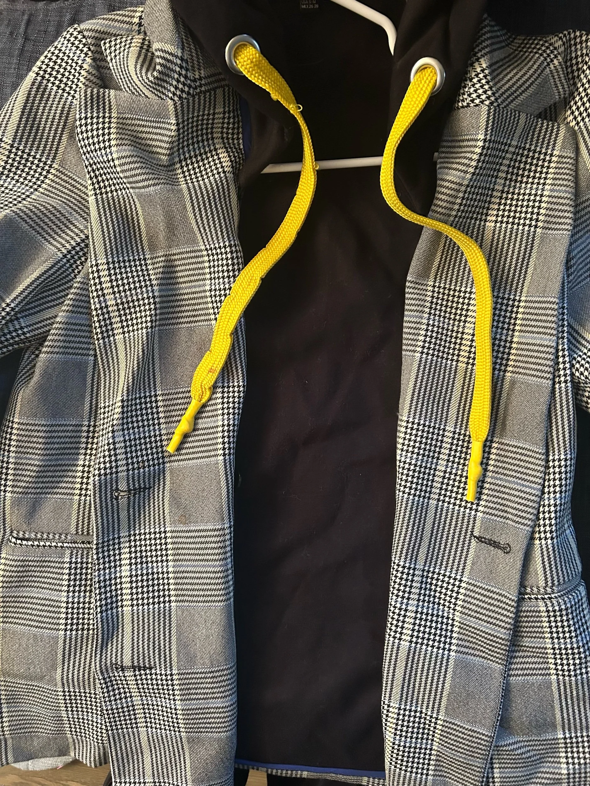 This Zara connected hoodie jacket is in great condition, offering a stylish layered look with a cozy fit, and features only minor wear on the hoodie strings.